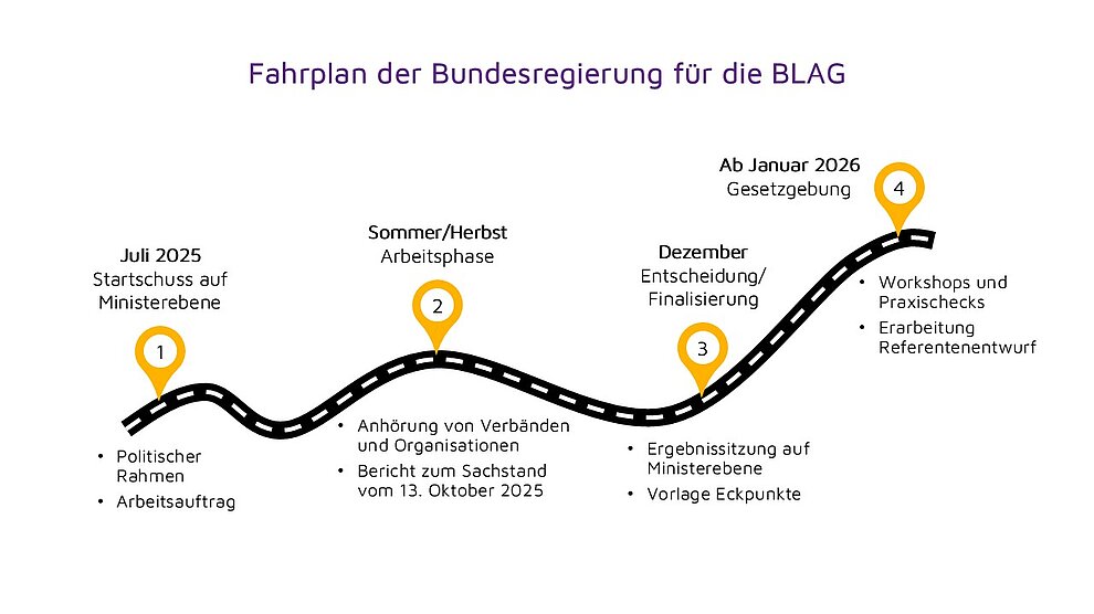 In einer gemeinsamen Sitzung hat sich am 7. Juli 2025 die Bund-Länder-Arbeitsgruppe (BLAG) in Berlin konstituiert und sich auf das weitere Vorgehen für eine Reform der Pflegeversicherung verständigt. Bis Ende des Jahres soll die Arbeitsgruppe „Zukunftspakt Pflege“ gemeinsame Eckpunkte vorlegen, die im kommenden Jahr in ein Gesetzgebungsverfahren einfließen. Hierzu wurden zwei Facharbeitsgruppen gebildet. Alle Maßnahmen stehen laut Koalitionsvertrag unter Finanzierungsvorbehalt.