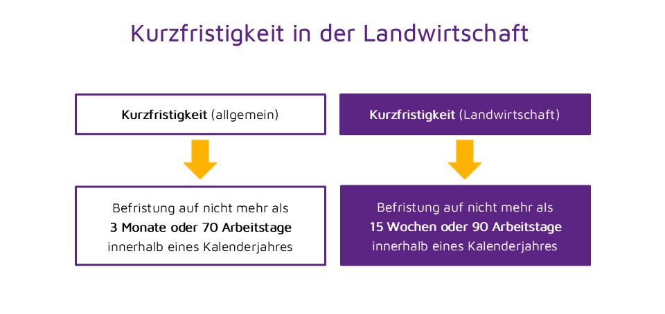 In der Gesetzesbegründung wird hierzu ausgeführt: "Die Ergänzung der Definition der kurzfristigen Beschäftigung in § 8 Absatz 1 Nummer 2 um einen neuen Halbsatz hat zum Ziel, den Selbstversorgungsgrad mit landwirtschaftlichen Produkten zu erhöhen ... Dafür werden die zeitlichen Grenzen der kurzfristigen Beschäftigung mit Rücksicht auf den besonderen Bedarf der Landwirtschaft an Saisonbeschäftigten für landwirtschaftliche Betriebe auf 90 Arbeitstage oder 15 Wochen (die bei einer 6-Tage-Woche 90 Arbeitstagen entsprechen) verlängert. Für die Bestimmung der landwirtschaftlichen Betriebe in diesem Sinne ist die Klassifikation der Wirtschaftszweige des Statistischen Bundesamtes (Ausgabe 2025), Abschnitt A, Abteilung 01 maßgeblich"; diese ist abrufbar unter: www.destatis.de